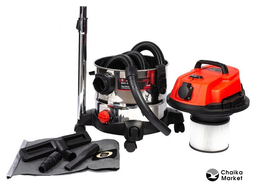 строительный, пылесборник: мешок+контейнер, потребление: 1500 Вт, регулировка мощности на корпусе