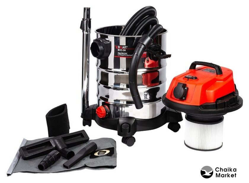строительный, пылесборник: контейнер, мощность всасывания: 300 Вт, потребление: 1500 Вт, без регулировки мощности, шум 80 дБ