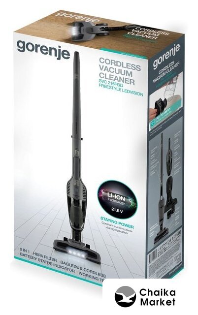 вертикальный 2-в-1, аккумулятор, мощность всасывания: 120 Вт, потребление: 250 Вт, без регулировки мощности, турбощетка, док-станция без зарядки