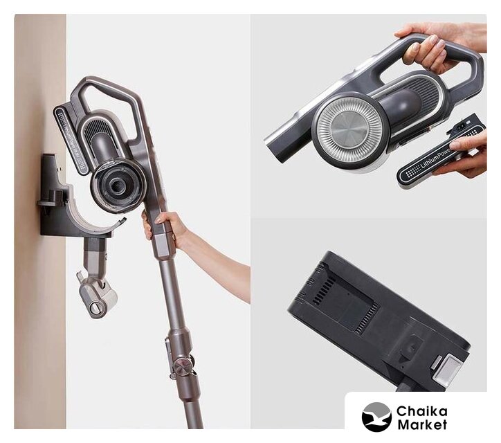 вертикальный 2-в-1/вертикальный с влажной уборкой, аккумулятор, регулировка мощности, турбощетка, шум 83 дБ