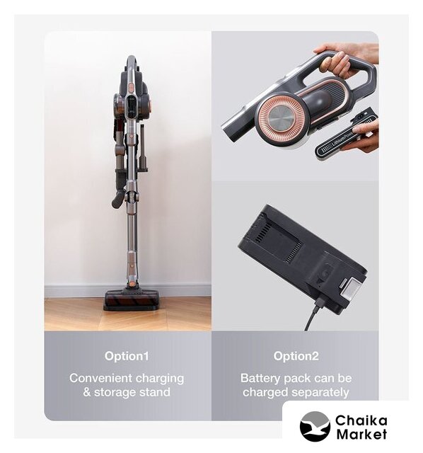 вертикальный 2-в-1/вертикальный с влажной уборкой, аккумулятор, регулировка мощности, турбощетка, шум 83 дБ
