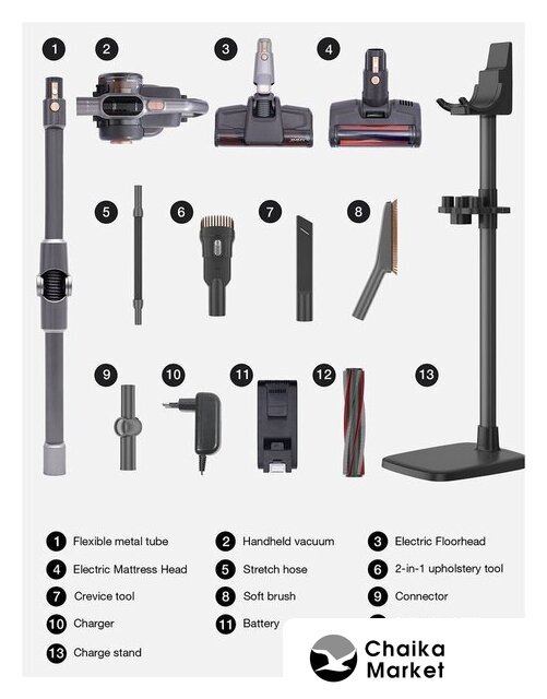 Дополнительные насадки | насадка для матрасов, мини-электрощетка, гибкий шланг, поворотный адаптер |