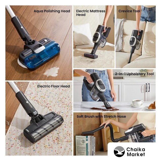 вертикальный/вертикальный с влажной уборкой, аккумулятор, регулировка мощности, турбощетка, станция для хранения с зарядкой, шум 80 дБ