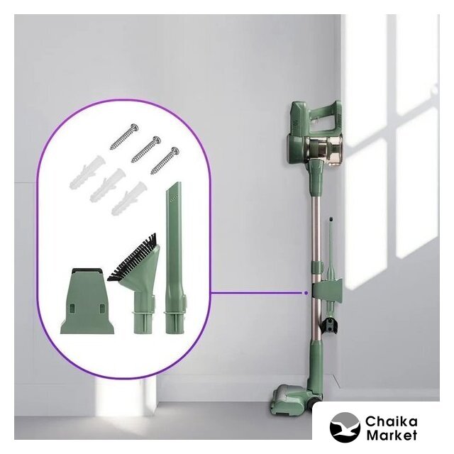 вертикальный 2-в-1, аккумулятор, потребление: 300 Вт, регулировка мощности, турбощетка, док-станция с зарядкой, шум 78 дБ
