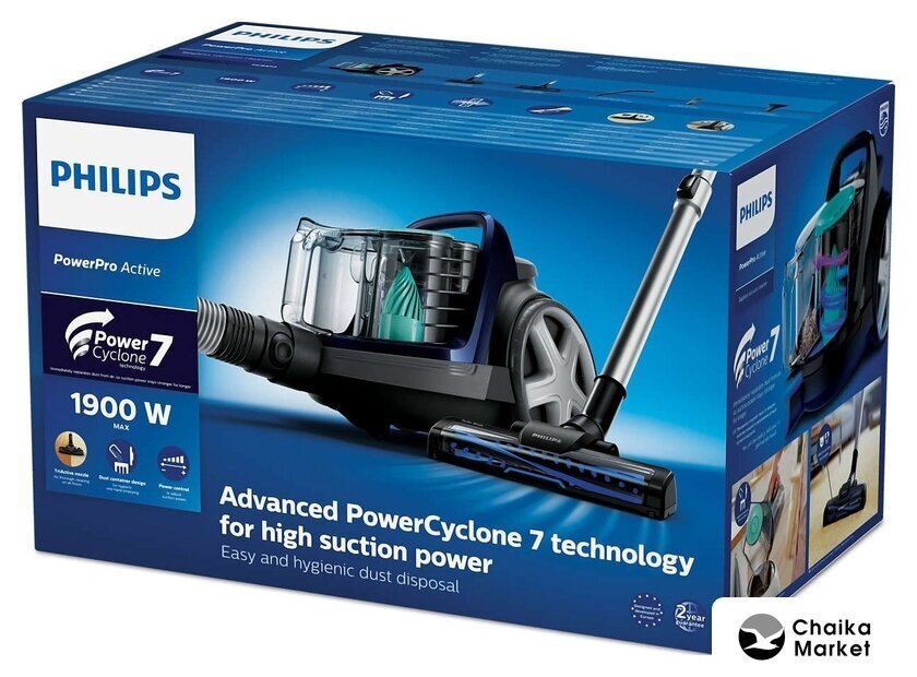 с контейнером, пылесборник: контейнер, мощность всасывания: 360 Вт, потребление: 1800 Вт, без регулировки мощности, шум 82 дБ