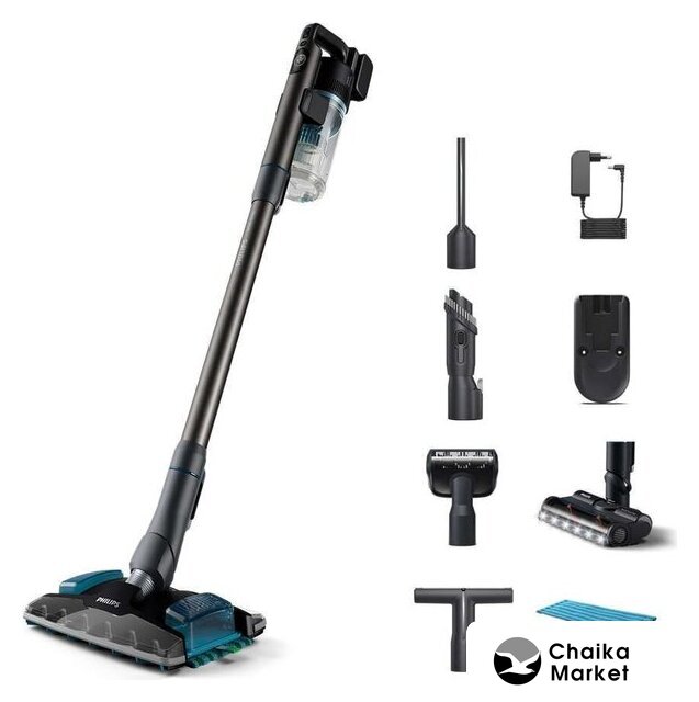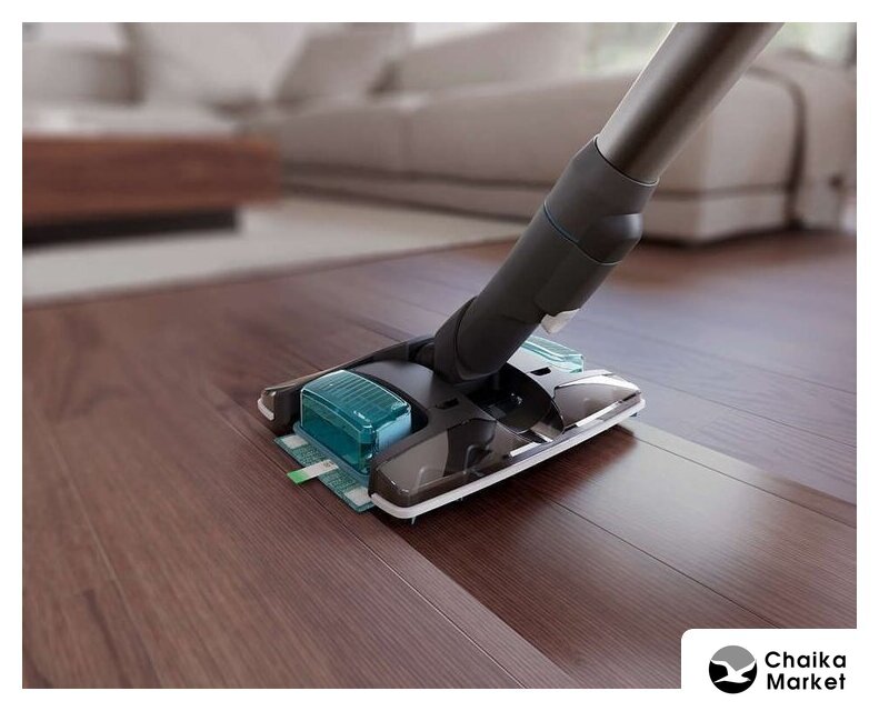 вертикальный с влажной уборкой, аккумулятор, регулировка мощности, турбощетка, шум 84 дБ