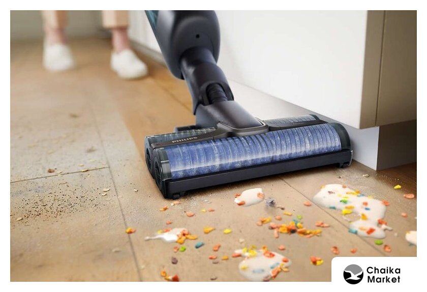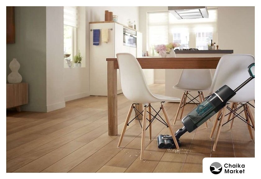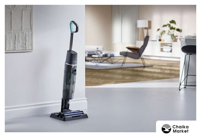 вертикальный с влажной уборкой, аккумулятор, регулировка мощности, турбощетка, шум 84 дБ