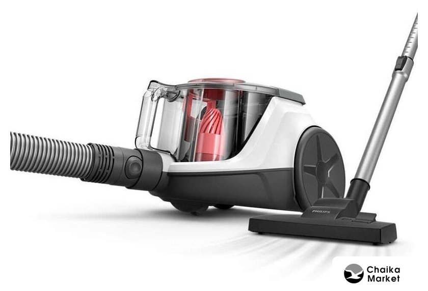 с контейнером, пылесборник: контейнер, мощность всасывания: 380 Вт, потребление: 2000 Вт, труба: сталь, регулировка мощности на ручке, шум 82 дБ