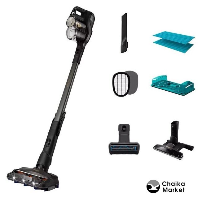 вертикальный с влажной уборкой, аккумулятор, регулировка мощности, турбощетка, шум 84 дБ