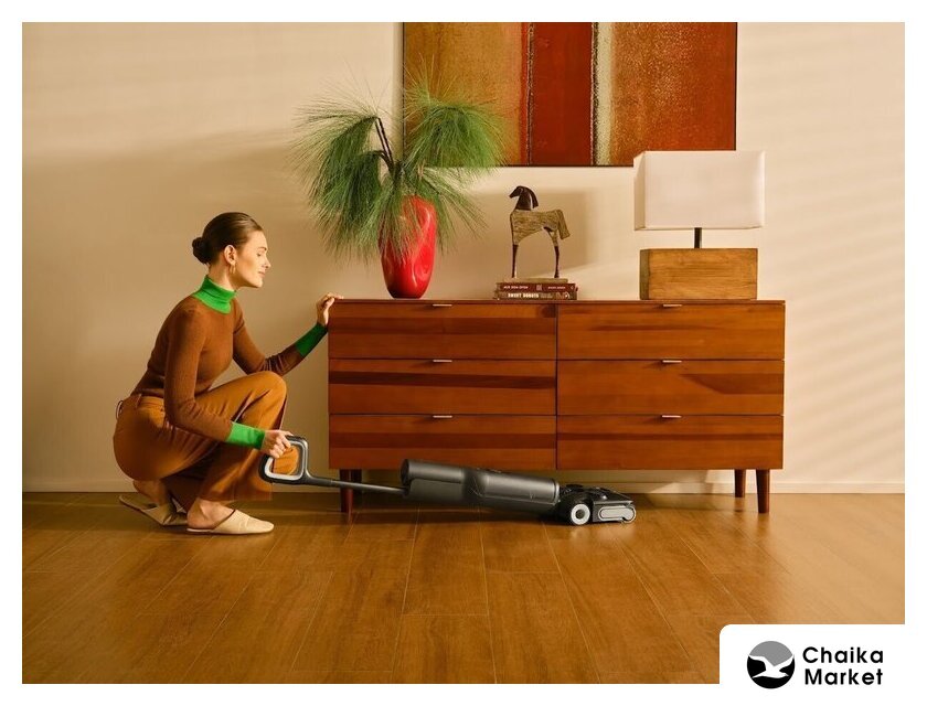 вертикальный моющий, аккумулятор, регулировка мощности, турбощетка, док-станция с самоочисткой и зарядкой, шум 80 дБ