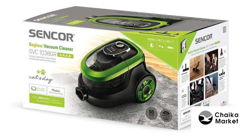 классический с контейнером, сеть, мощность всасывания: 165 Вт, потребление: 800 Вт, регулировка мощности, шум 76 дБ