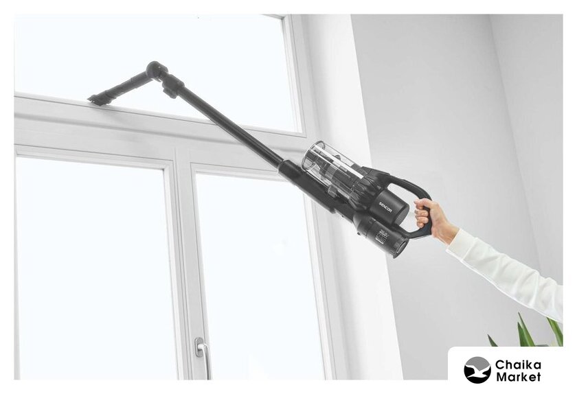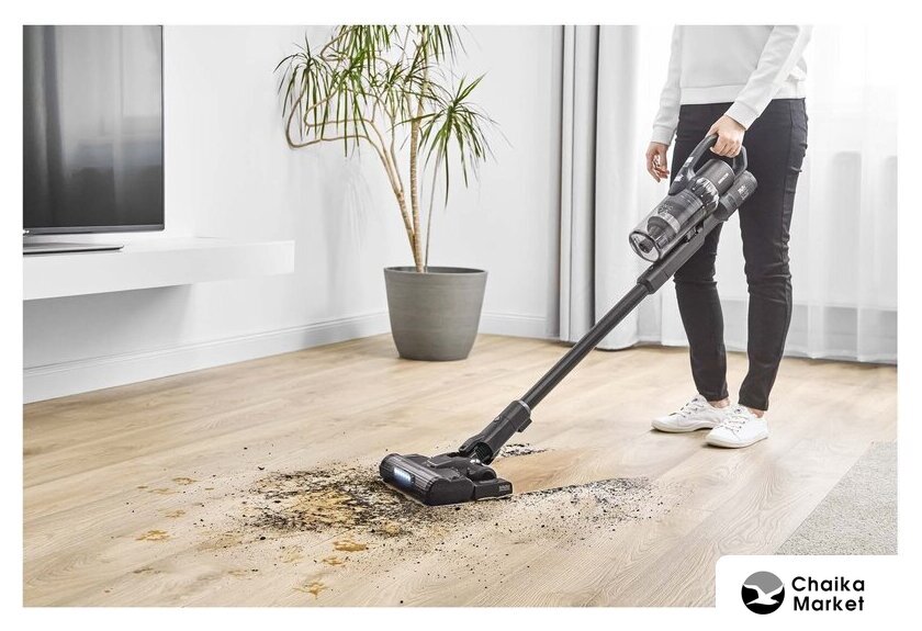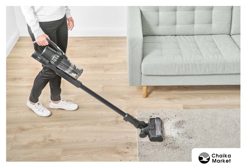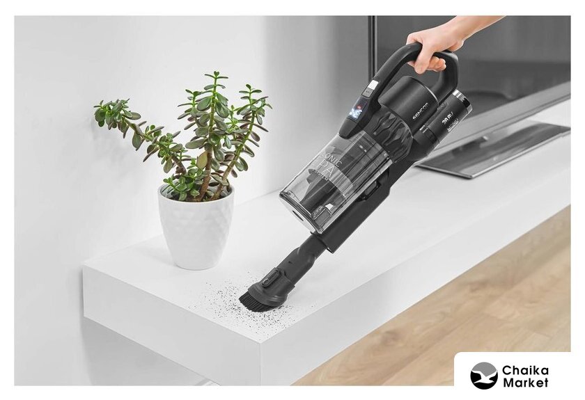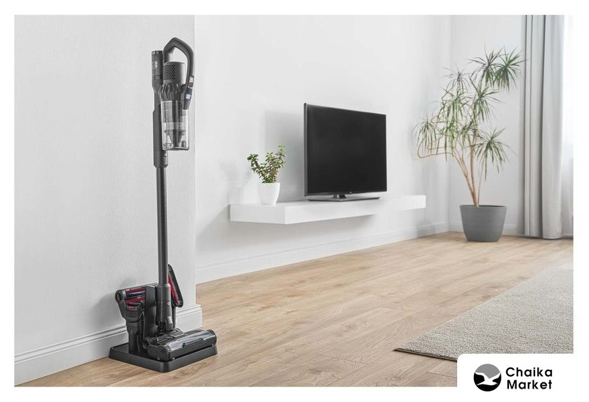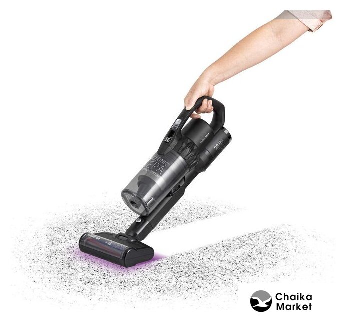 вертикальный с влажной уборкой, аккумулятор, регулировка мощности, турбощетка, док-станция без зарядки, шум 76 дБ