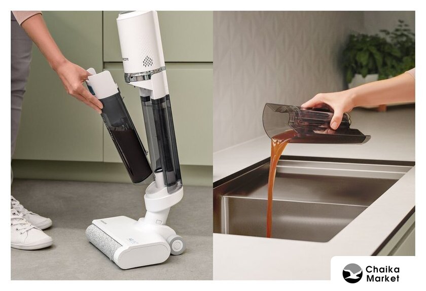 | Функциональные особенности | всасывание жидкостей, дисплей, автоматическая мойка швабры, автоматическая сушка швабры |