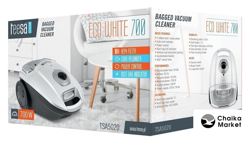 классический с мешком, сеть, потребление: 700 Вт, регулировка мощности, шум 76 дБ