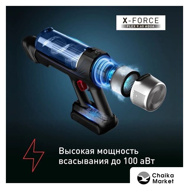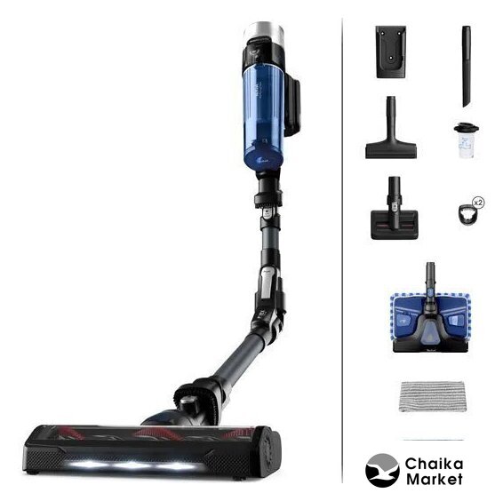 вертикальный с влажной уборкой, аккумулятор, мощность всасывания: 150 Вт, потребление: 450 Вт, регулировка мощности, турбощетка, док-станция с зарядкой, шум 80 дБ
