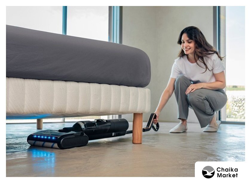 вертикальный моющий, аккумулятор, регулировка мощности, турбощетка, док-станция с самоочисткой и зарядкой, шум 81 дБ