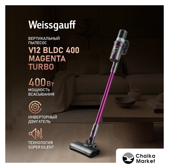 вертикальный 2-в-1, аккумулятор, потребление: 120 Вт, регулировка мощности, турбощетка, док-станция с зарядкой, шум 82 дБ