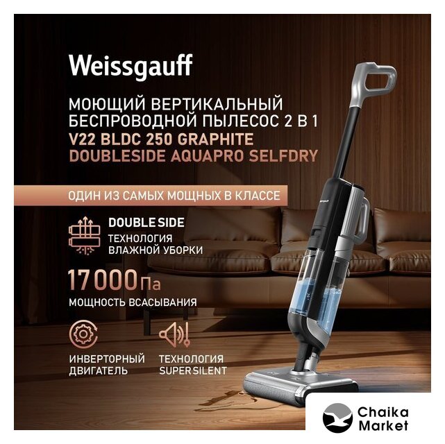 | Функциональные особенности | всасывание жидкостей, дисплей, автоматическая мойка швабры, автоматическая сушка швабры |