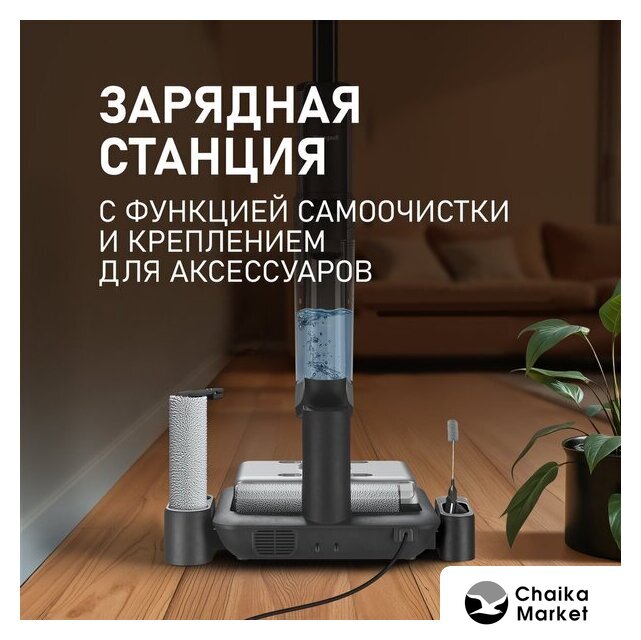 вертикальный моющий, аккумулятор, потребление: 300 Вт, регулировка мощности, турбощетка, док-станция с самоочисткой и зарядкой, шум 78 дБ