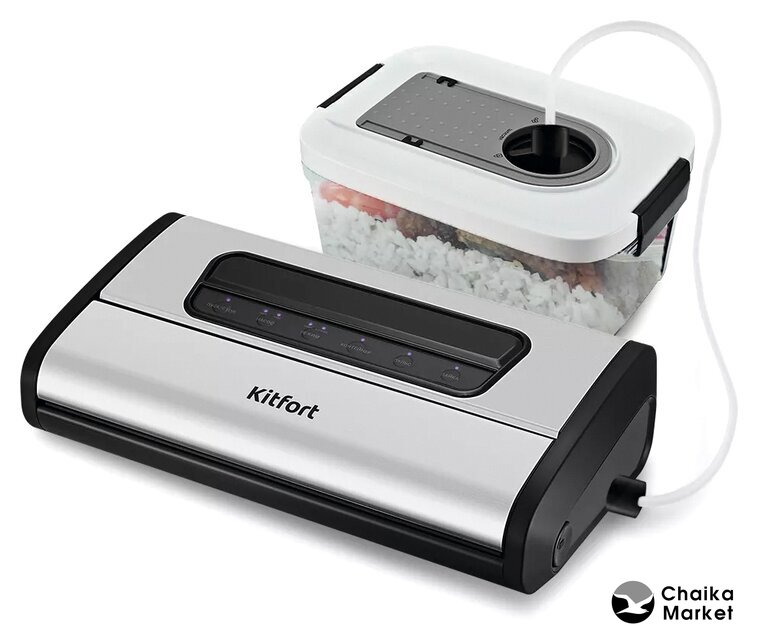 Комплектация | - вакуумный паковщик- 5 пакетов для вакуумирования размерами 22х30 см- шланг для откачки воздуха из контейнеров |