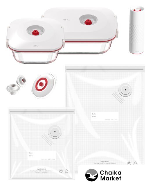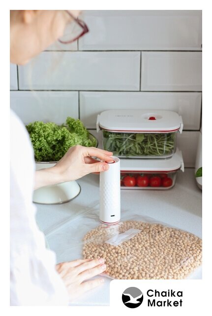 | Комплектация | Вакуумный насос электрический - 1 шт.Кабель для зарядки Type-C - 1 шт.Вакуумная крышка размер S - 1 шт.Вакуумный контейнер 1040мл - 1 шт.Вакуумный контейнер 530мл - 1 шт.Пробка для вина - 2 шт.Вакуумные пакеты размер S - 5 шт.Вакуумные пакеты размер M - 5 шт.Инструкция - 1 шт. |