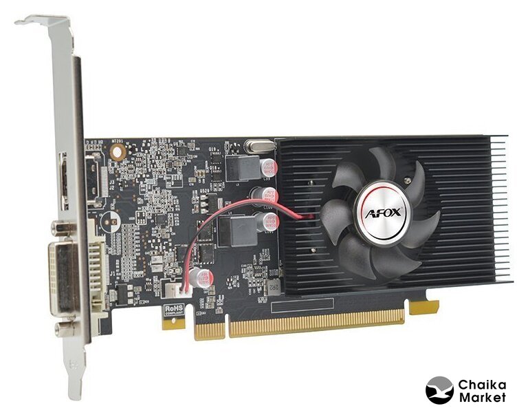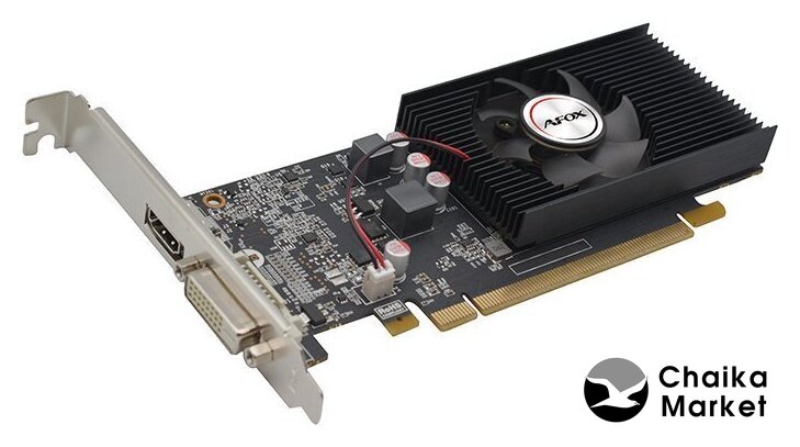 NVIDIA GeForce GT 1030, базовая частота 1227 МГц, Turbo-частота 1468 МГц, 384sp, частота памяти 1500 МГц, 64 бит, доп. питание: нет, 1 слот, DVI, HDMI