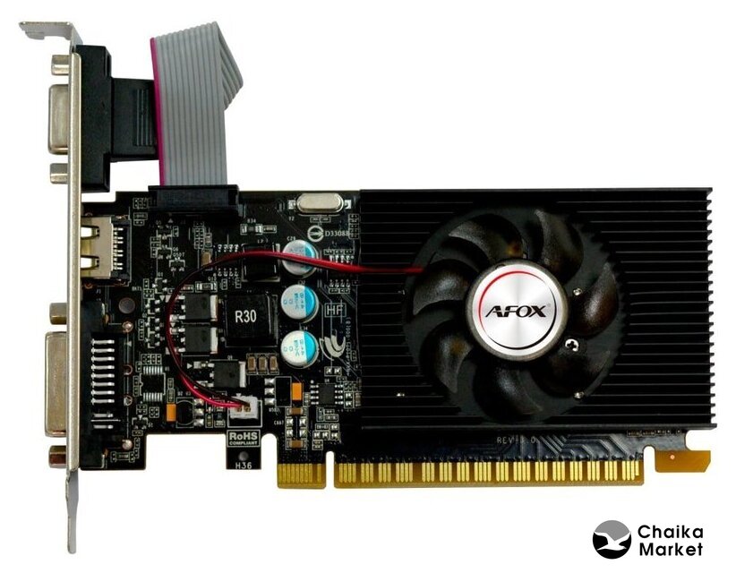1 ГБ GDDR3, 650 МГц, 160sp, 64 бит, 1 слот, питание нет, HDMI, VGA, DVI