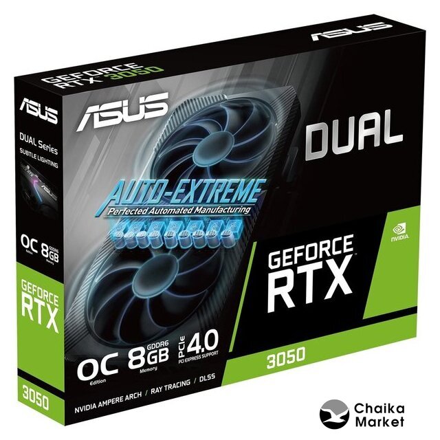 8 ГБ GDDR6 LHR, 1550 МГц / 1777 МГц, 2560sp, 20 RT-ядер, трассировка лучей, 128 бит, 2 слота, питание 6 pin, HDMI, DisplayPort, DVI