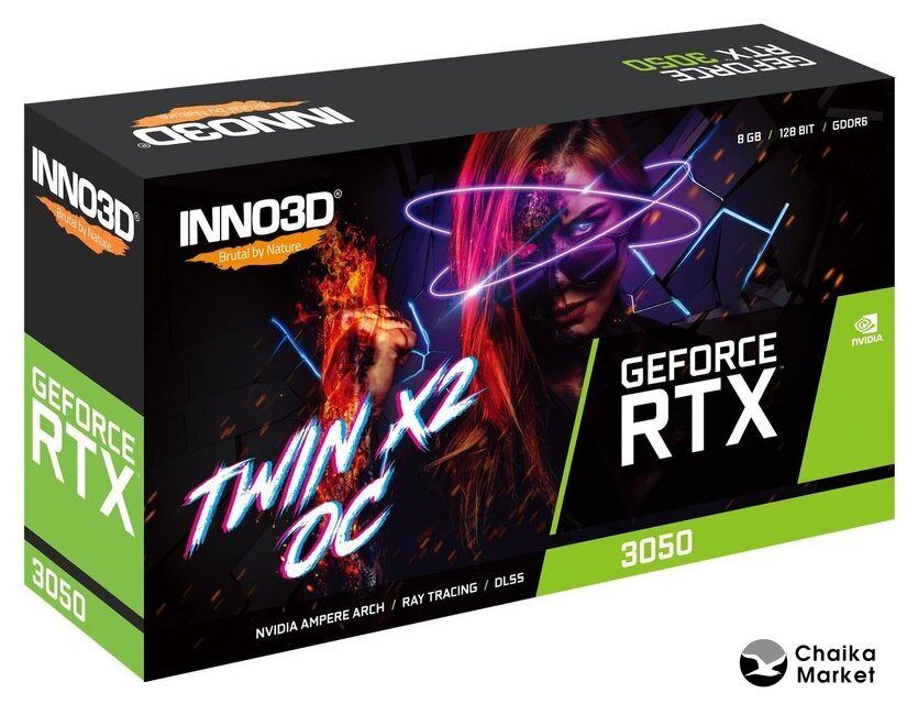 8 ГБ GDDR6 LHR, 1550 МГц / 1852 МГц, 2560sp, 20 RT-ядер, трассировка лучей, 128 бит, 2 слота, питание 8 pin, HDMI, DisplayPort