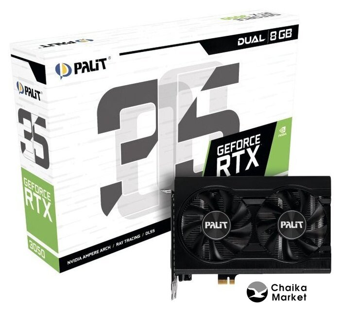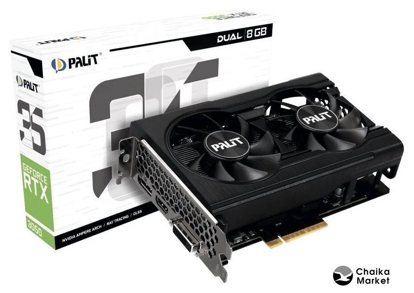 8 ГБ GDDR6 LHR, 1550 МГц / 1852 МГц, 2560sp, 20 RT-ядер, трассировка лучей, 128 бит, 2 слота, питание 6 pin, HDMI, DisplayPort, DVI