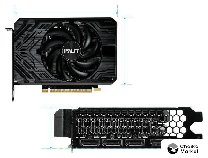 8 ГБ GDDR6, 2310 МГц / 2595 МГц, 4352sp, 34 RT-ядер, трассировка лучей, 128 бит, 2.5 слота, питание 8 pin, HDMI, DisplayPort