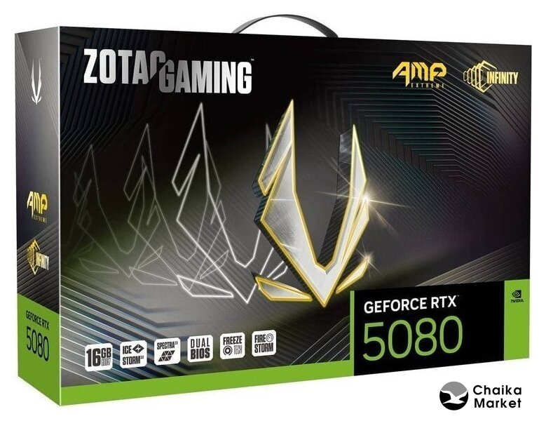 16 ГБ GDDR7, 2300 МГц, 10752sp, 84 RT-ядер, трассировка лучей, 256 бит, 2 слота, питание 16 pin (PCIe Gen5), HDMI, DisplayPort