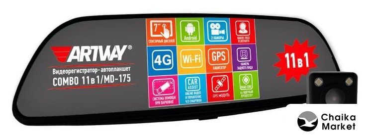 основная камера: 4 Мп 150°, вторая камера: 2 Мп, видео 3840x2160 H.265/MOV, GPS, G-сенсор, экран 11.3"