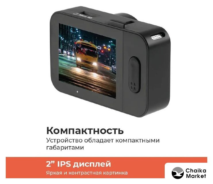 основная камера: 3.5 Мп 170°, видео 2560x1440 H.265, GPS, G-сенсор, экран 3"