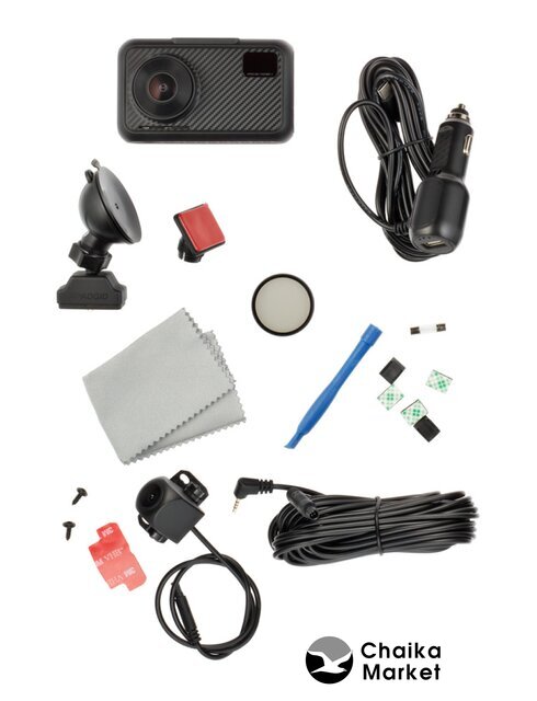 Комплектация | - Магнитное крепление на присоске и 3М скотче;- Поляризационный фильтр CPL;- Монтажный набор;- Адаптер питания с USB и запасным предохранителем;- Салфетка для линзы и экрана;- Водонепроницаемая камера заднего вида и крепежные элементы;- Провод для камеры заднего вида 6.5м. |