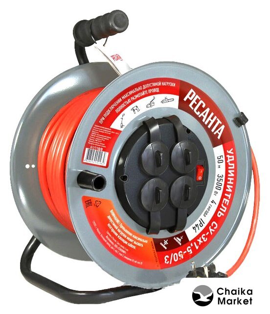 удлинитель, 50 м, 4 розетки евро с заземлением / 3000 Вт