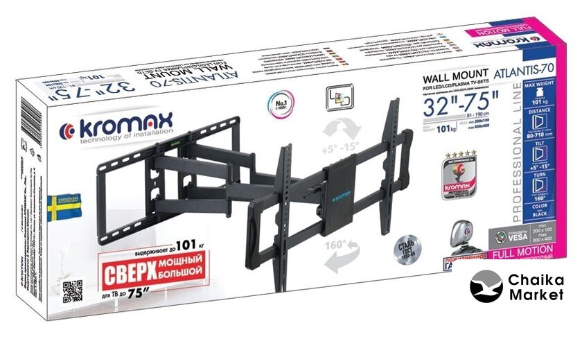 настенный кронштейн для ЖК-телевизора 55-100", цвет черный