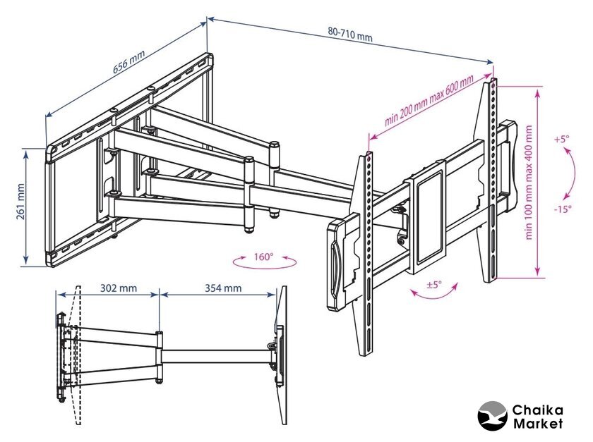 Расстояние от стены (потолка) | 80 — 710 мм |