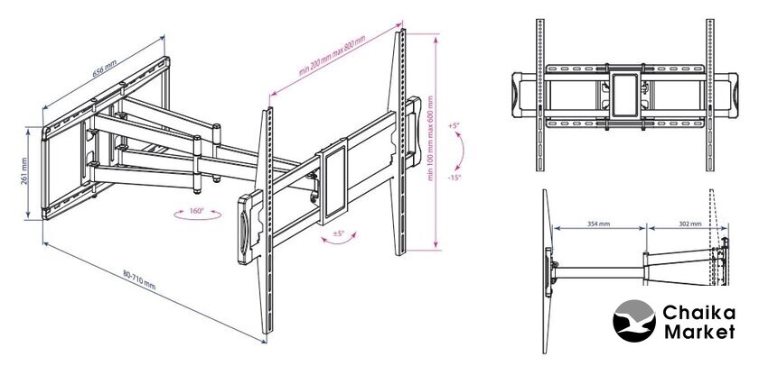 Расстояние от стены (потолка) | 80 — 710 мм |