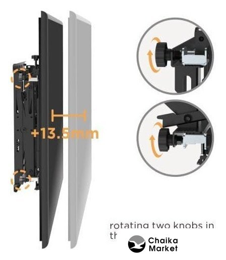 для ЖК-телевизоров, 42-110", настенный, поворотный, наклон 15°, поворот 90°, цвет черный