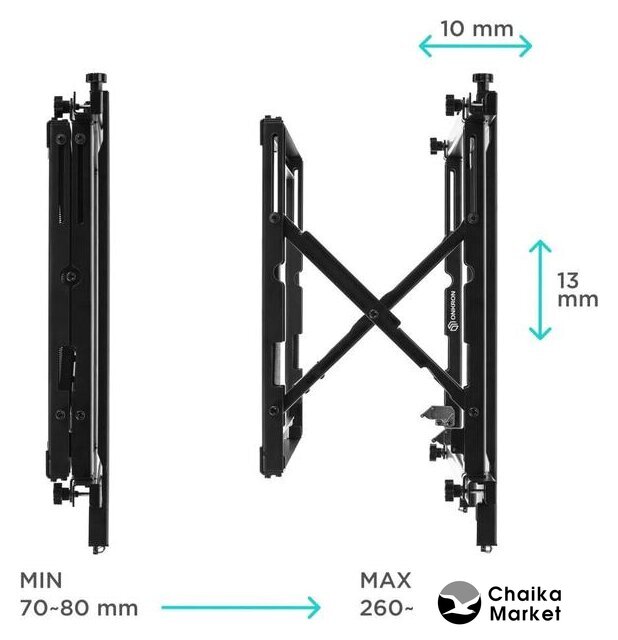 кронштейн для информационной панели, 45-70", настенный, с регулировкой высоты, наклон -3-3°, регулировка высоты 13 мм, цвет черный