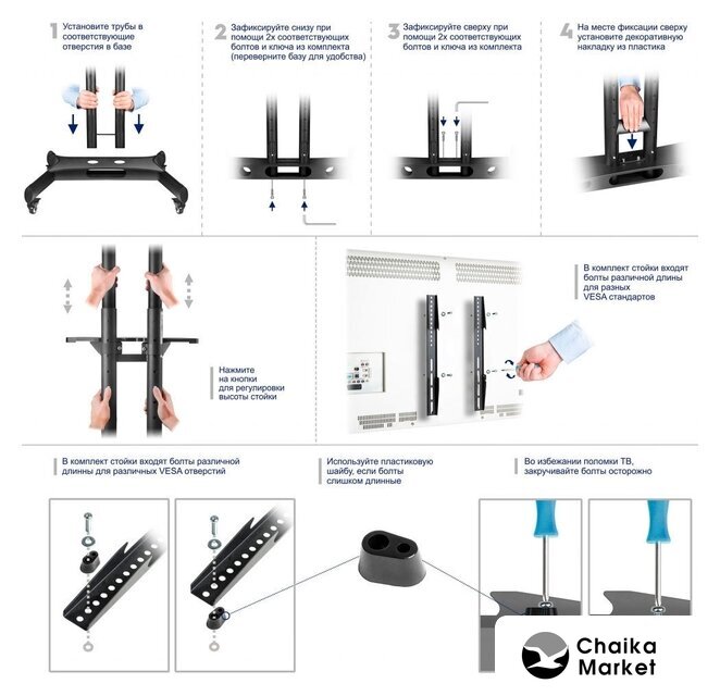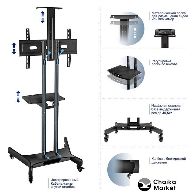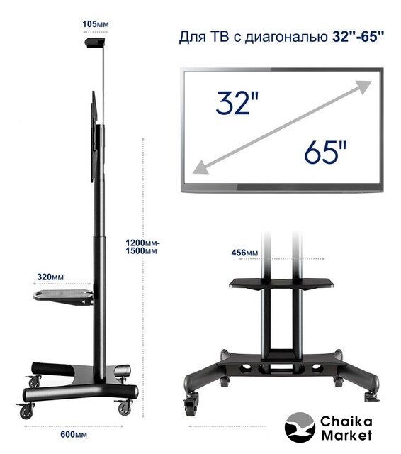 напольный кронштейн для ЖК-телевизора 32-80", цвет черный