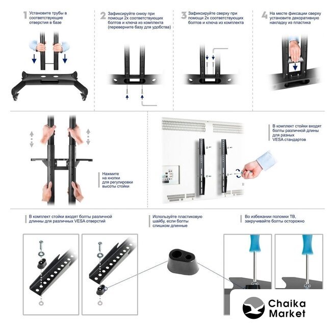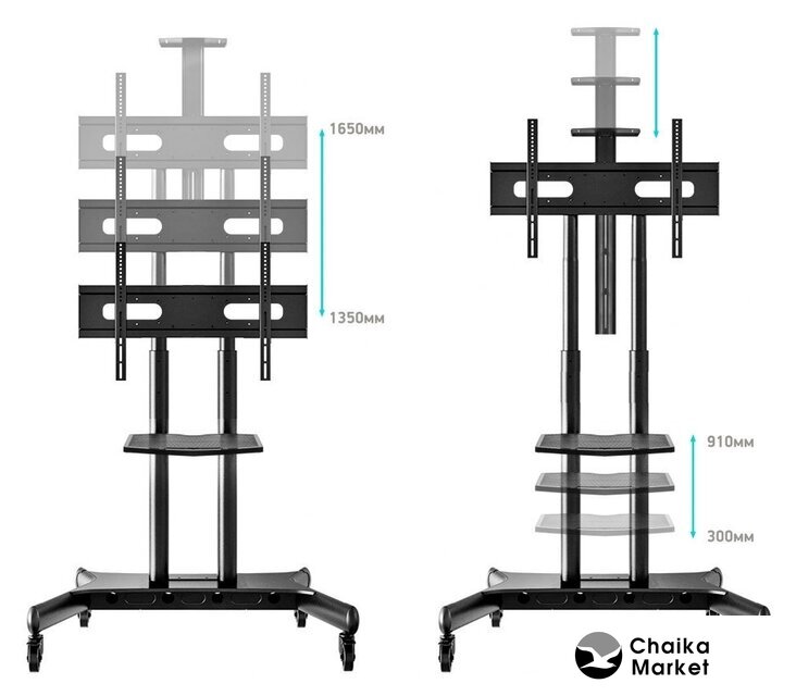 для ЖК-телевизоров, 60-120", напольный, с регулировкой высоты, регулировка высоты 1280-1580 мм, цвет черный