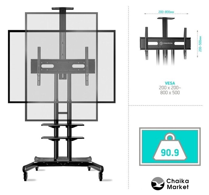 для ЖК-телевизоров, 60-105", напольный, с полкой, цвет черный