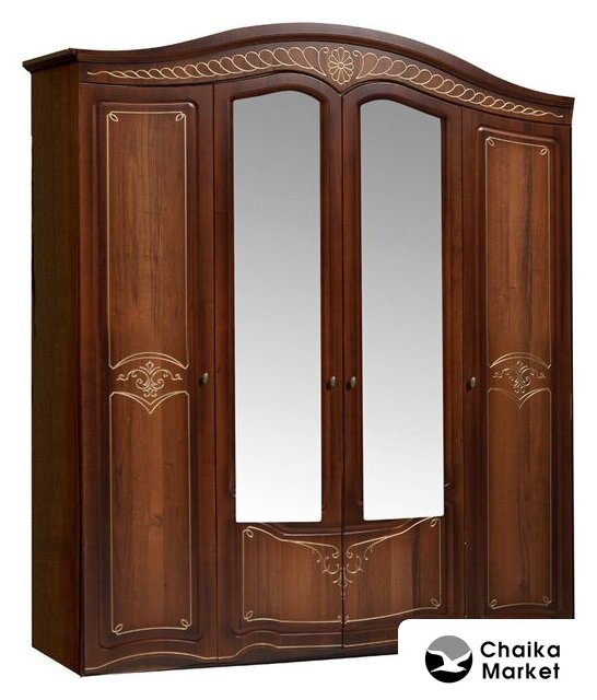 шкаф распашной, для жилой комнаты/для спальни, пятидверный, наполнение комбинированное, зеркало, 0 полок, цвет: дерево темное/коричневый, 223.8x59.5x234.6 см