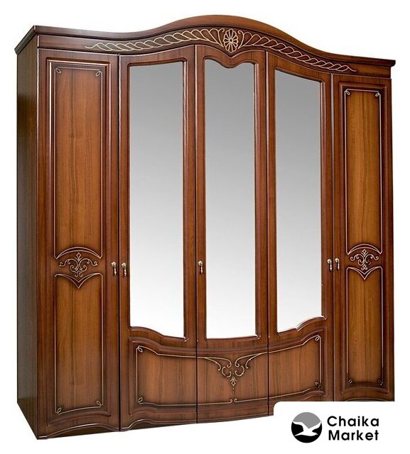 шкаф распашной, для жилой комнаты/для спальни, четырехдверный, наполнение комбинированное, зеркало, 0 полок, цвет: дерево темное/коричневый, 181x59.5x234.6 см