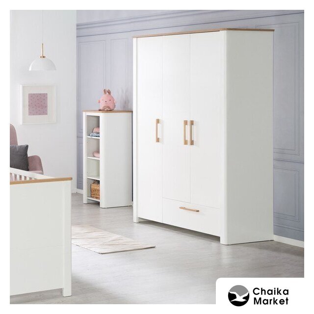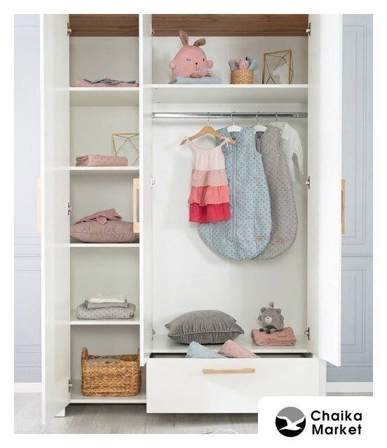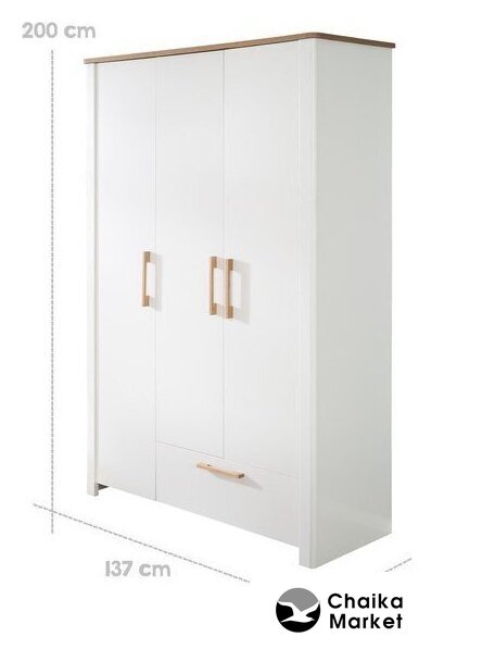 шкаф распашной, для жилой комнаты/для спальни, трехдверный, наполнение комбинированное, 5 полок, цвет: коричневый, 140.8x58.8x200.6 см