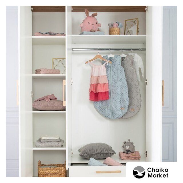 шкаф распашной, для спальни/для жилой комнаты, пятидверный, наполнение платяное, цвет: белый/серый, 186x58.1x220.2 см