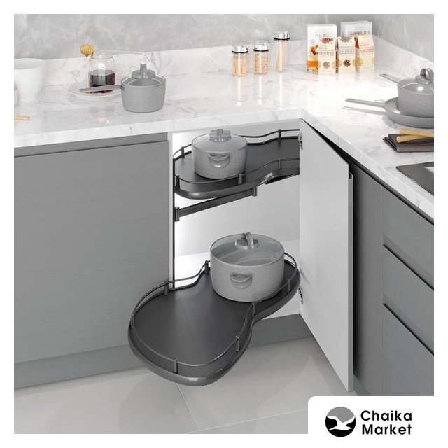 Корзина выкатная Starax Волшебный уголок поворотный S-3016-А (правое выдвижение, антрацит) - Изображение №1 — Chaika Market Корзина выкатная Starax Волшебный уголок поворотный S-3016-А (правое выдвижение, антрацит) - Изображение №2 — Chaika Market