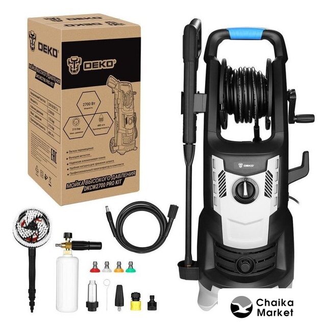 Комплектация | - Мойка - 1 шт.- Ручка - 1 шт.- Катушка для шланга - 1 шт.- Ручка катушки - 1 шт.- Колеса - 2 шт.- Боковые держатели катушки - 2 шт.- Держатель шнура питания - 1 шт.- Держатель емкости для моющего средства - 1 шт.- Держатель пистолета - 2 шт.- Высоконапорный пистолет - 1 шт.- Распылительная трубка - 1 шт.- Шланг высокого давления (шланг 10 м. установлен на катушку) - 2 шт.- Пенокомплект - 1 шт.- Фильтр - 1 шт.- Насадка-распылитель - 1 шт.- Вращающаяся насадка-щетка - 1 шт .- Форсунки - 4 шт.- Коннектор для подачи воды - 1 шт.- Быстроразъемное соединение - 1 шт .- Игла для прочистки распыляющего наконечника - 1 шт.- Крепежный комплект - 1 шт.- Руководство по эксплуатации- Коробка |